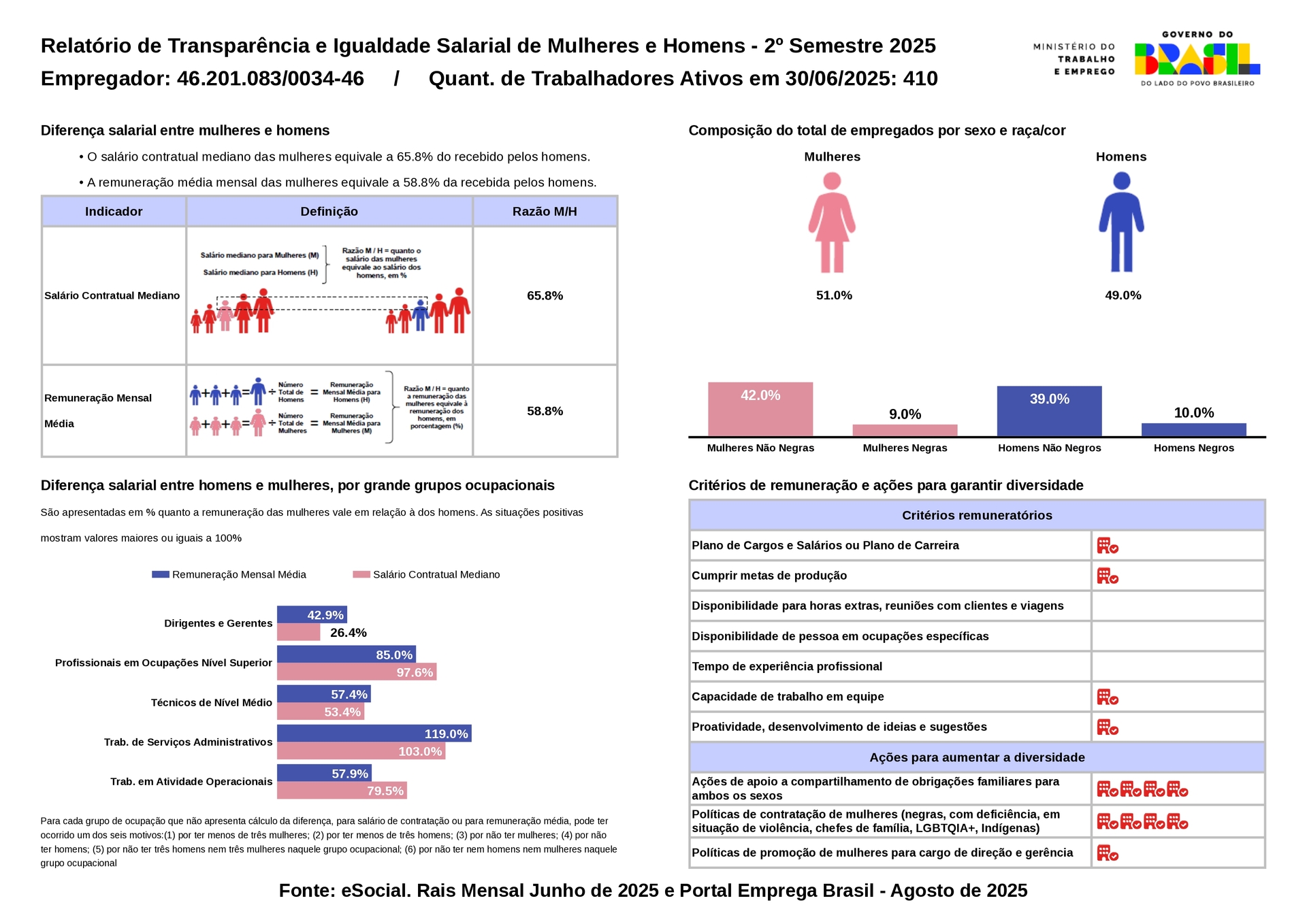Sendo assim, a Lwart publica abaixo, por determinação da Lei de Igualdade Salarial, os relatórios para os 02 (CNPJ) com 100 empregados ou mais.
